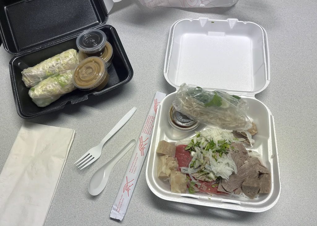 I opened up the app and started looking around at what my options were. I decided to try a mom-and-pop Vietnamese restaurant very close to me. I love Asian cuisine, and I’ve gotten takeout from Vietnamese places before, and it’s always a good option, even if it is messy sometimes (getting Bún or Phở via takeout requires containers of liquid that take time to assemble for eating). That’s okay, I figured: I’m up for a little mess… especially since I’m not paying for lunch.